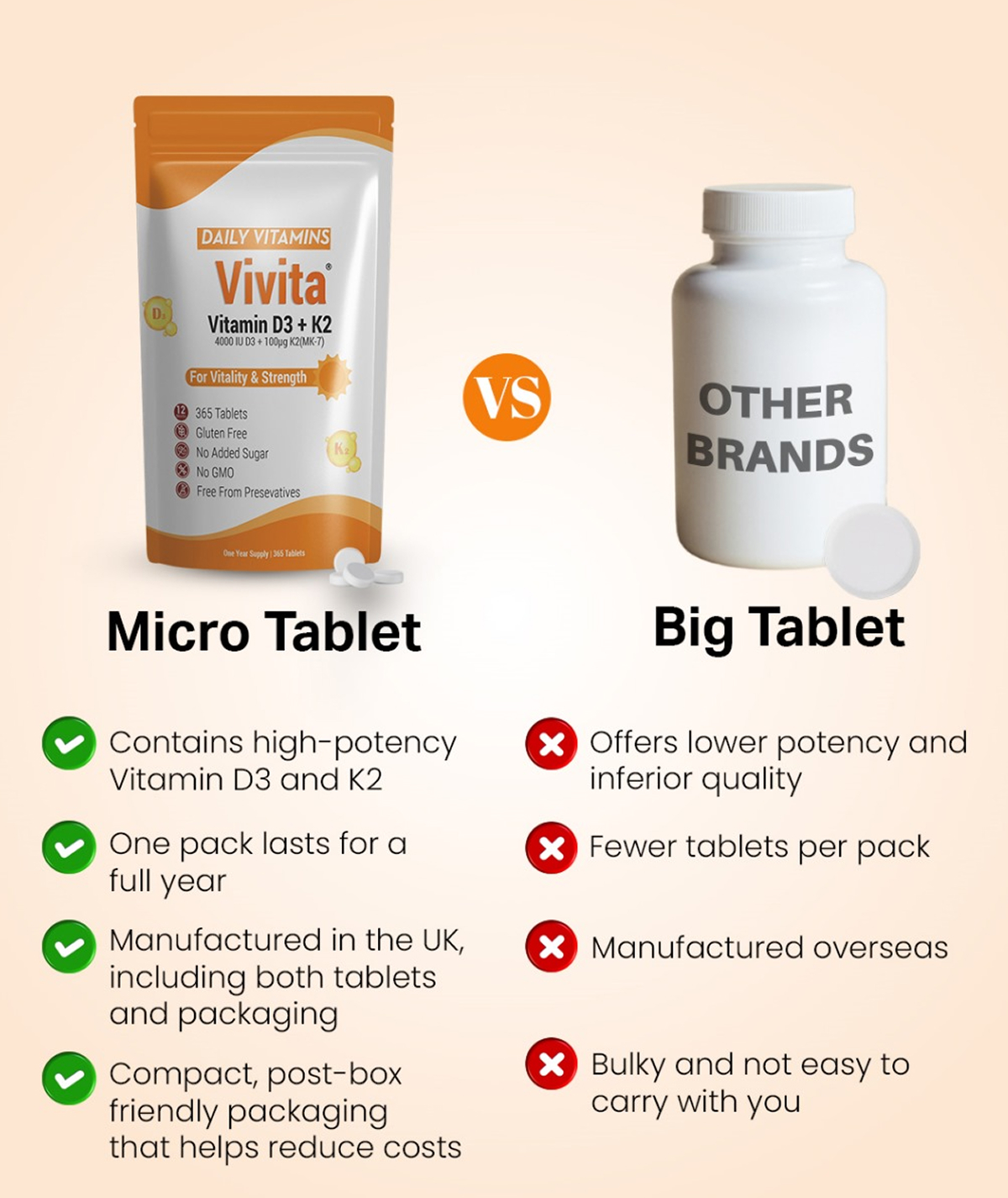 – Compact Packaging, Big Savings: Packaged in a slim, letterbox-friendly pouch, our supplements are easy to store, ship, and open. Enjoy better value and less waste compared to bulky bottles, sprays, or drops.